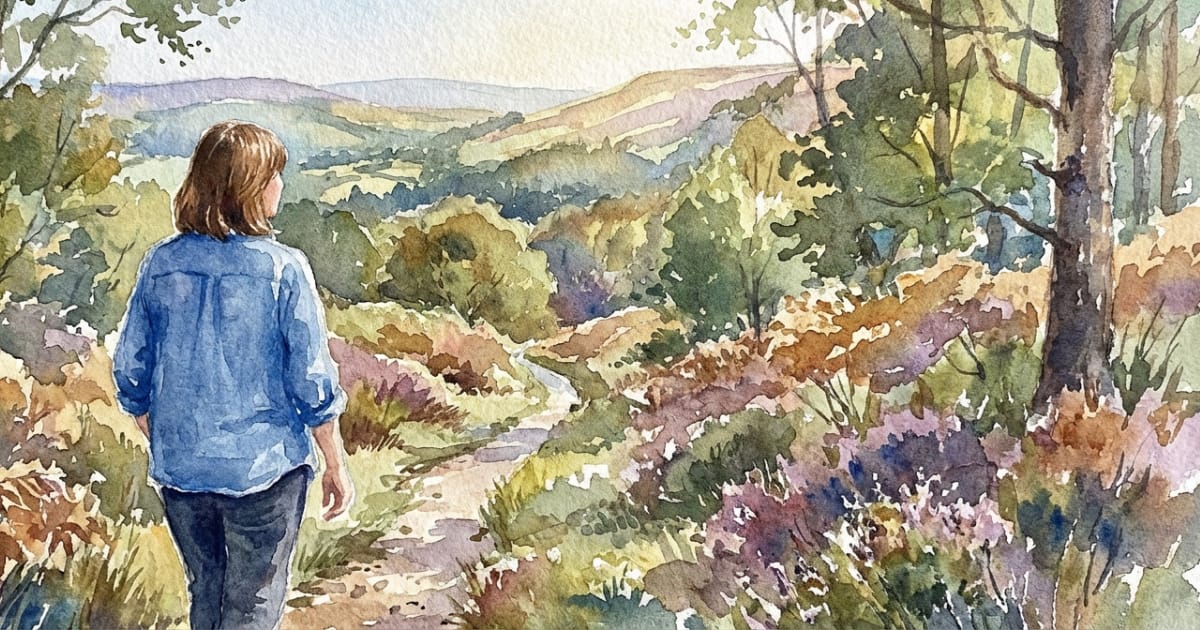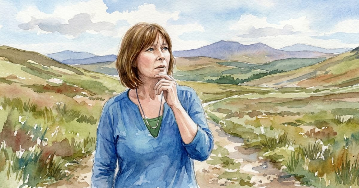 When something feels stuck, she goes outside and stays still. She returns to the same place again and again. A hill. A patch of ground. A place that begins to feel familiar enough to listen.