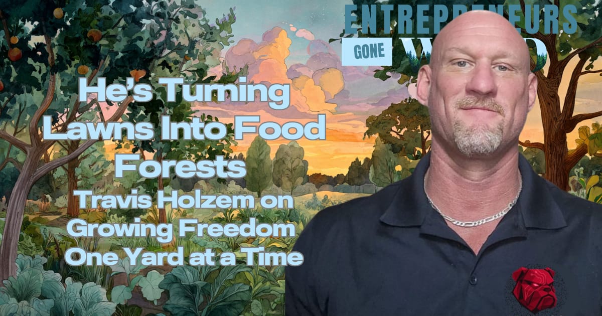Which brings me to this week’s feature. Because if anyone knows how to adapt, overcome, and rebuild after a major setback, it’s Travis Holzem, a Marine veteran turned food-forest designer who’s literally transforming lawns into food security systems.